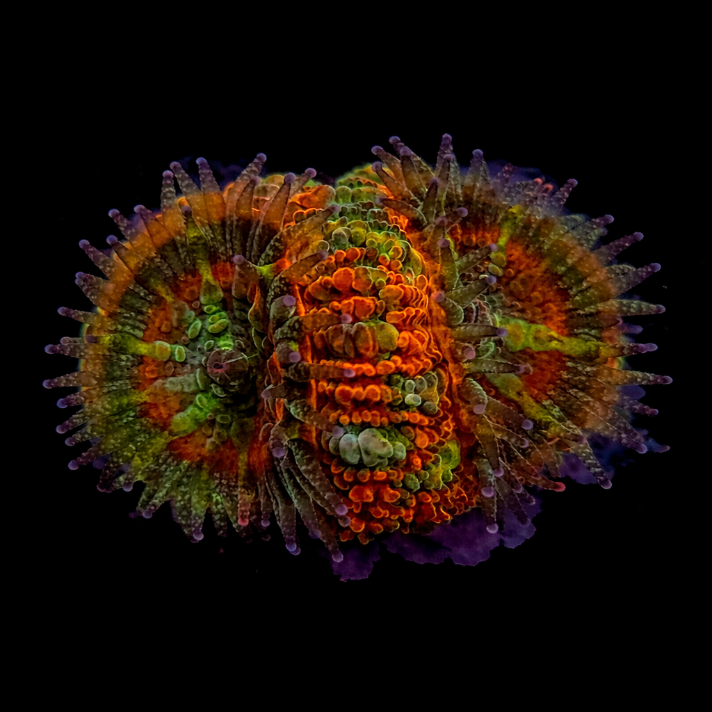 Micromussa / Acanthastrea lordhowensis, known as the Acan Lord, is one of the most beloved and colorful LPS corals in the reef aquarium hobby. It forms dense colonies of fleshy, scalloped polyps that display stunning combinations of red, orange, teal, and metallic hues. Native to the deeper, shaded reef slopes of Australia and the Coral Triangle, M. lordhowensis thrives in stable, nutrient-rich systems and rewards aquarists with both hardiness and exceptional visual appeal.