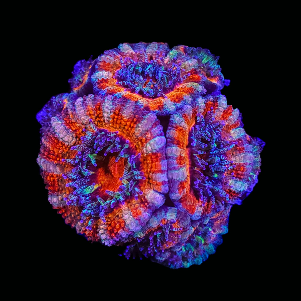 Micromussa / Acanthastrea lordhowensis, known as the Acan Lord, is one of the most beloved and colorful LPS corals in the reef aquarium hobby. It forms dense colonies of fleshy, scalloped polyps that display stunning combinations of red, orange, teal, and metallic hues. Native to the deeper, shaded reef slopes of Australia and the Coral Triangle, M. lordhowensis thrives in stable, nutrient-rich systems and rewards aquarists with both hardiness and exceptional visual appeal.