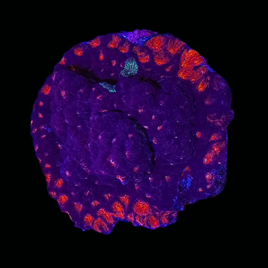 Favia sp., commonly referred to as Favia Coral, is a hardy and visually engaging large-polyp stony (LPS) coral known for its dense skeletal structure and vividly colored corallites. Often displaying contrasting centers and walls in shades of green, red, orange, blue, or metallic hues, Favia forms classic “brain-like” colonies that add texture and depth to reef aquariums. Its durability and adaptability make it a reliable choice for both established mixed reefs and LPS-dominant systems.