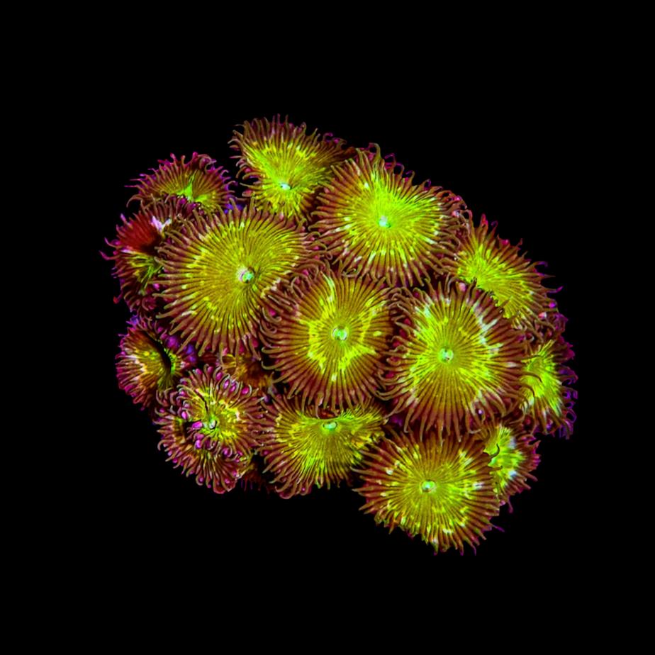 ⚠️ Note: As with all Palythoa species, colonies may contain palytoxin—a potent natural toxin. Always handle with gloves and protective eyewear when fragging, cleaning, or repositioning polyps.