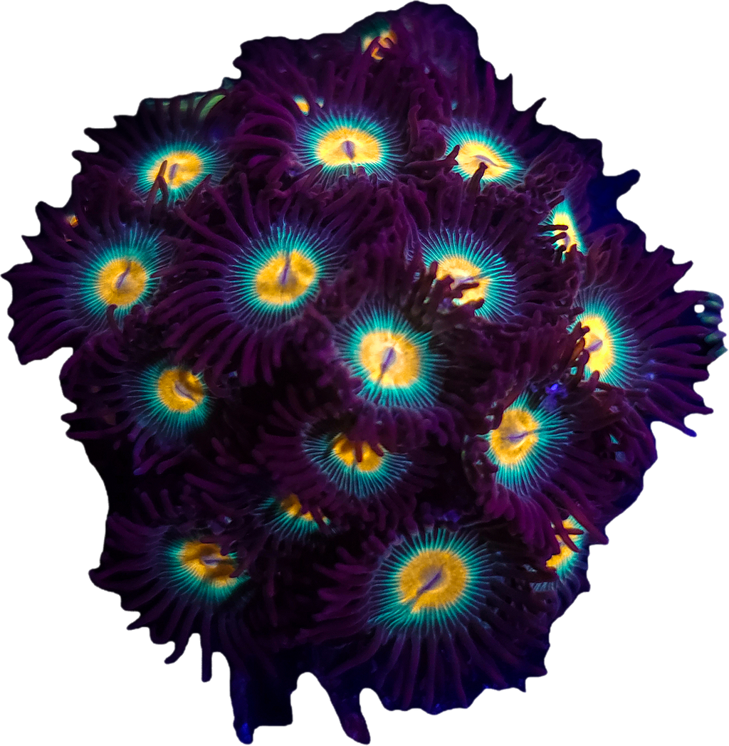 Zoanthus spp., known collectively as the Zoanthids or “Zoas,” are among the most colorful and diverse soft corals in the reef aquarium hobby. Each polyp resembles a miniature flower, displaying an endless array of color combinations—from radiant neons and deep metallics to ultra-rare morphs like Rainbow Incinerators, Utter Chaos, and Rastas. Highly adaptive and visually striking, Zoanthids can form dense mats that blanket rockwork with vibrant color, making them a staple in both beginner and collector-level reef aquariums. Their resilience, growth rate, and breathtaking variety make them one of the most rewarding coral groups to cultivate.