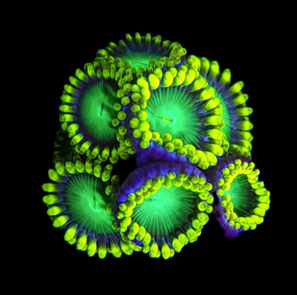 Zoanthus spp., known collectively as the Zoanthids or “Zoas,” are among the most colorful and diverse soft corals in the reef aquarium hobby. Each polyp resembles a miniature flower, displaying an endless array of color combinations—from radiant neons and deep metallics to ultra-rare morphs like Rainbow Incinerators, Utter Chaos, and Rastas. Highly adaptive and visually striking, Zoanthids can form dense mats that blanket rockwork with vibrant color, making them a staple in both beginner and collector-level reef aquariums. Their resilience, growth rate, and breathtaking variety make them one of the most rewarding coral groups to cultivate.